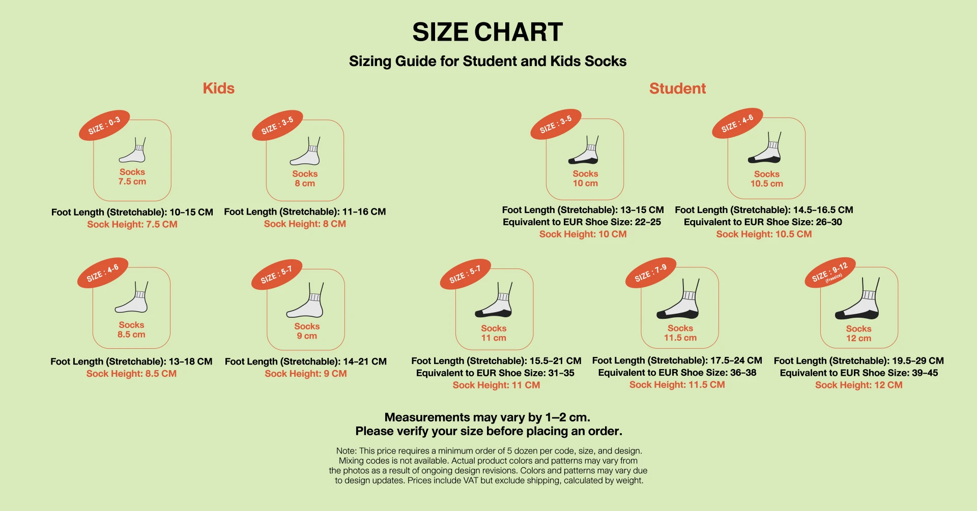 Minimum order: 5 dozens/pack per code/size/color - For products packed 10 dozens per pack.