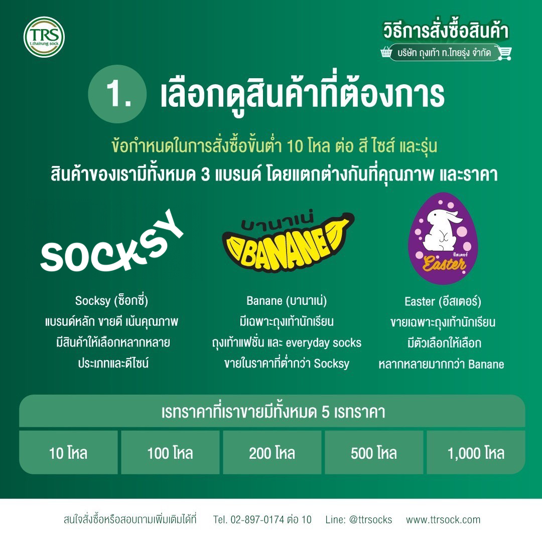 Every SKU is moq 10 doz /Color/ Design up to ราคาถุงเท้าทุกรุ่นสำหรับซื้อ 10 โหลขึ้นไป Dismiss