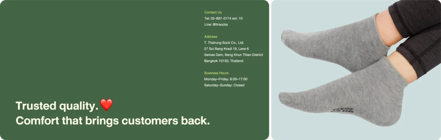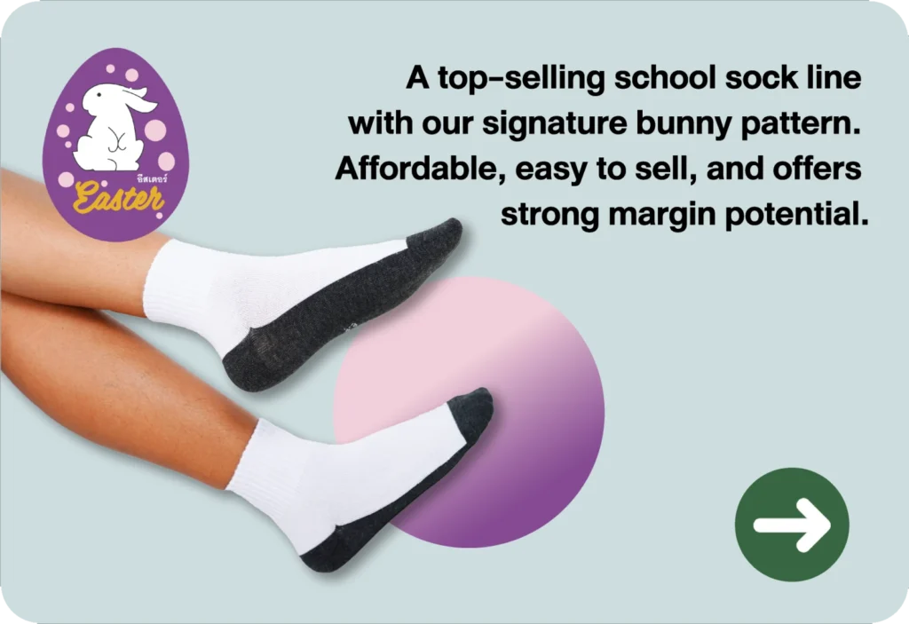 Proudly crafted by Thai manufacturers. We offer a wide range of socks designed to meet diverse customer needs and everyday uses.